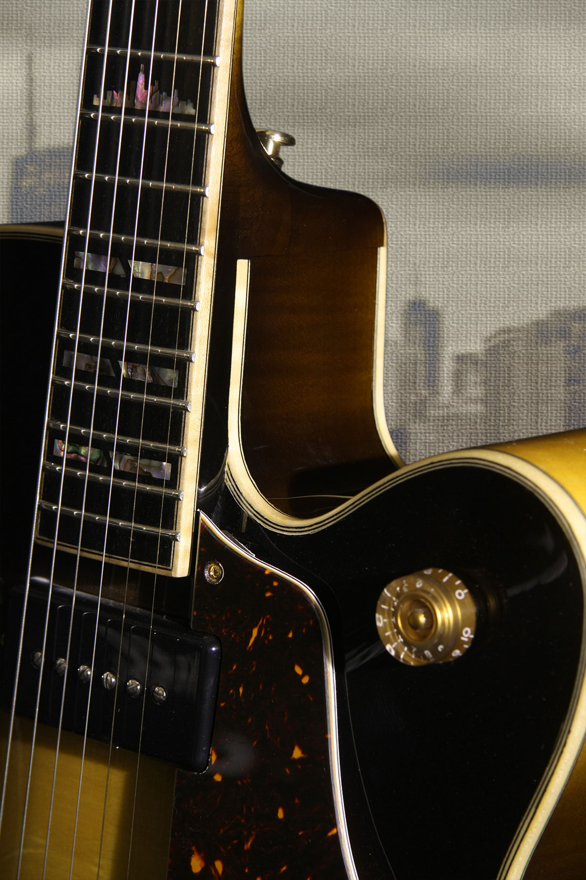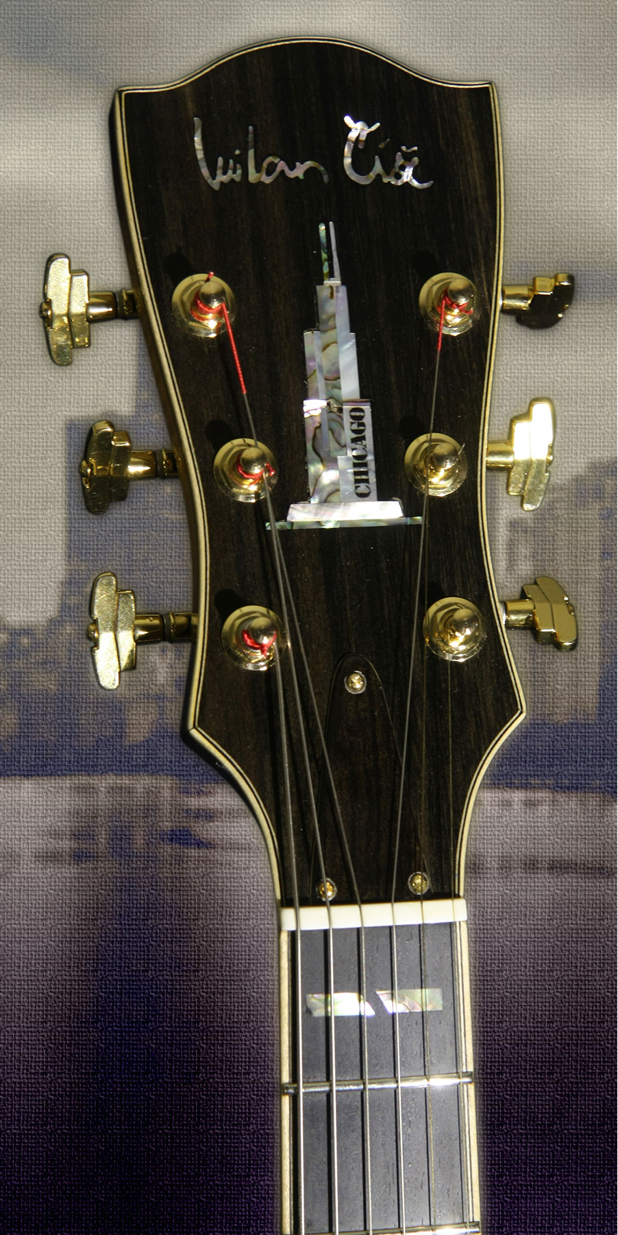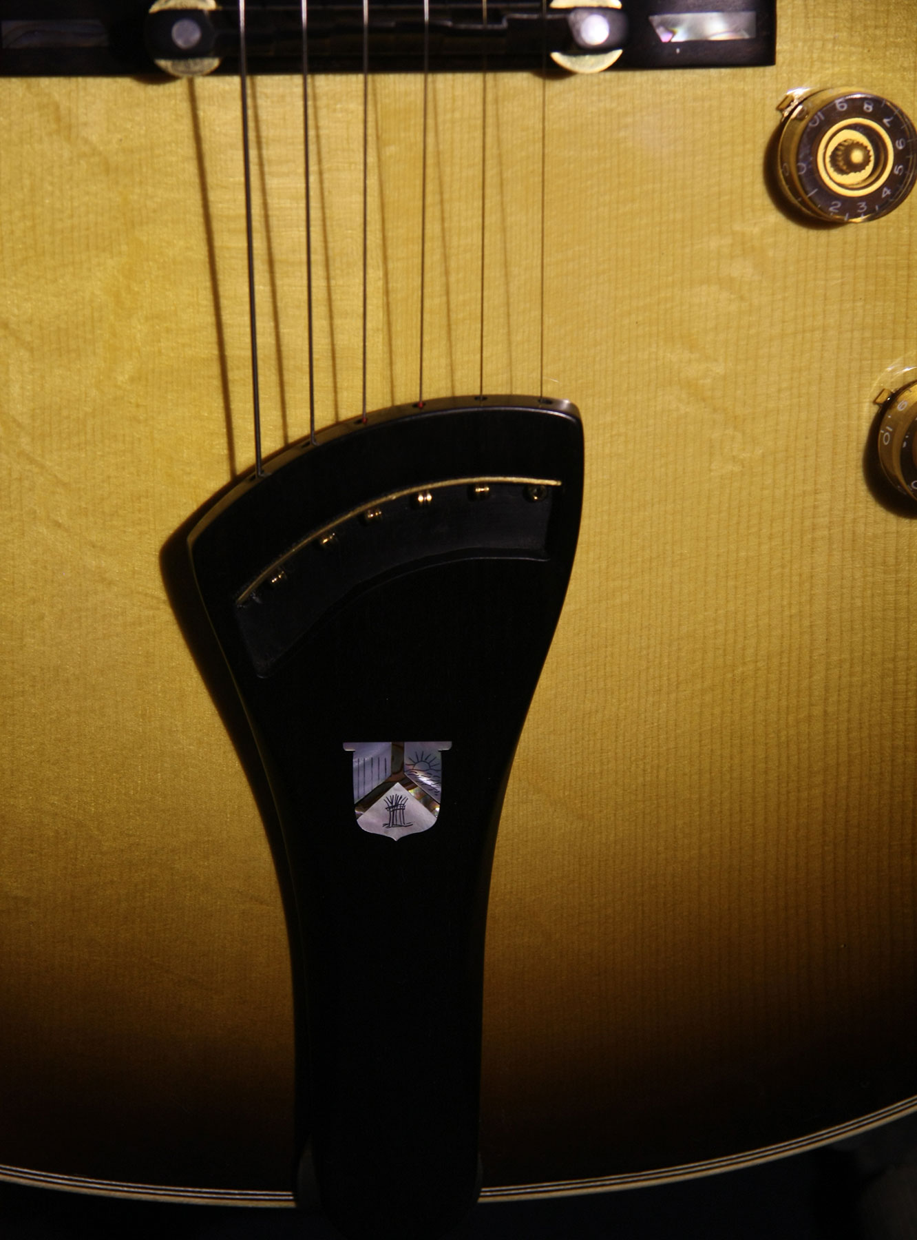 - Telo: Tradičná kombinácia dreva pre archtop gitary - smrek s javorom, F-otvormi a X rebrovaním. Obruby sú kombináciou vlnovitého javora a ebenu.