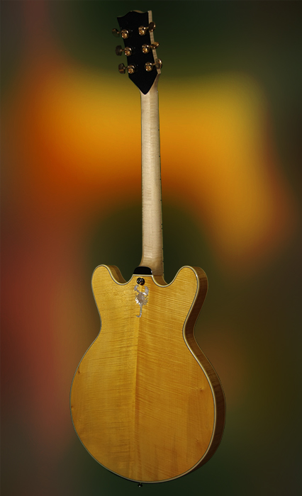- Shape: A full maple solid body archtop guitar with mahogany center block. Body width is 16", depth is 1.75 ".