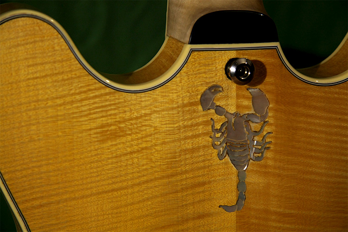 - Soundboard: AAAA Class carved solid maple on voiced center block. Custom shaped F holes with ivorid binding.