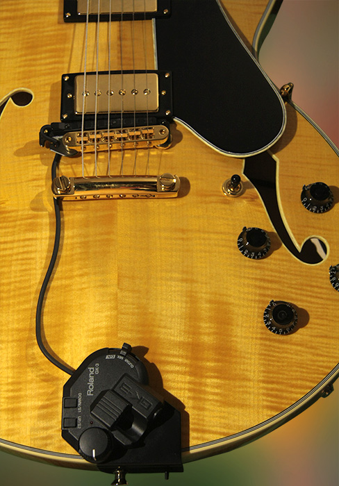- Other: Binding is 7 piece cream plastic and bridge is gold Schaller® with piezo pickups. All inlays and fancies are mother of pearl, abalone and ebony. Pickups - pair of P95 LeoSound's in gold. Two volume controls and two custom controls for piezo and magnetic pickup. Schaller preamp mounted inside the guitar and Roland® pickup GK3 assembled on bridge.